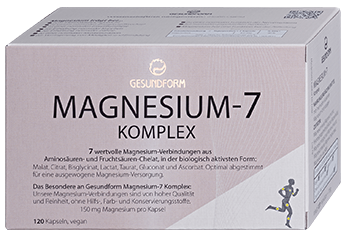 Wir empfehlen Magnesium-7 Komplex aus unserer GESUNDFORM Produktreihe, um Sie jederzeit mit Energie zu versorgen. Weiterlesen…